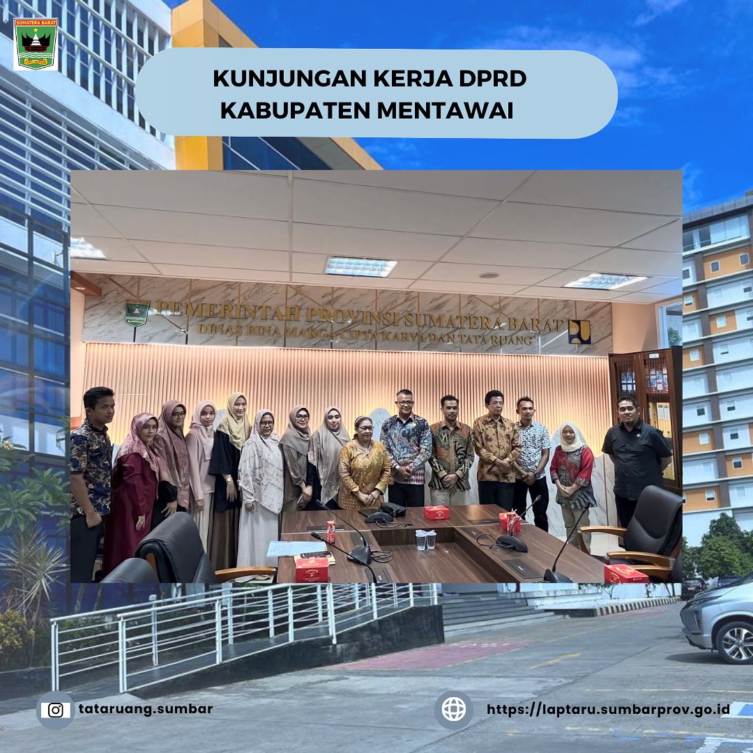 Dinas Bina Marga, Cipta Karya dan Tata Ruang Provinsi Sumatera Barat mendapat kunjungan dari DPRD Kabupaten Kepulauan Mentawai terkait Koordinasi dan Konsultasi tentang Perubahan Rencana Tata Ruang Wilayah (RTRW) Kabupaten Kepulauan Mentawai pada Jumat, 28 Juli 2023. Rapat koordinasi dan konsultasi ini dipimpin oleh Kepala Bidang Tata Ruang dan dihadiri oleh perwakilan anggota DPRD Kabupaten Kepulauan Mentawai, Dinas PUPR Kabupaten Kepulauan Mentawai, serta kepala seksi dan staf di bidang tata ruang. Pada rapat koordinasi ini menyepakati percepatan dalam proses penyempurnaan dokumen Perubahan RTRW Kabupaten Kepulauan Mentawai.