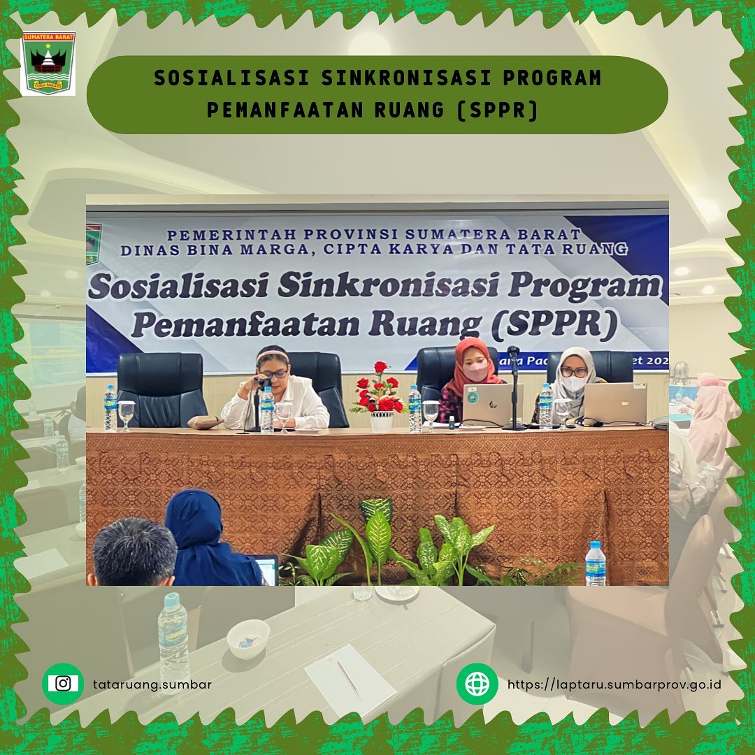 Bidang Tata Ruang Dinas BMCKTR Provinsi Sumatera Barat telah melaksanakan Kegiatan Sosialisasi Sinkronisasi Program Pemanfaatan Ruang (SPPR) Tahun 2023, pada Rabu, 08 Maret 2023. Sosialisasi dihadiri oleh perwakilan dari Dinas PUPR dan Bappeda Kabupaten/Kota di Lingkungan Pemerintah Provinsi Sumatera Barat. Dalam sosialisasi tersebut, hadir para Narasumber dari Direktorat Sinkronisasi Pemanfaatan Ruang, Kementerian ATR/BPN, yaitu Ibu Nenden Mauliani, ST dan Ibu Ayi Fajarwati, ST, MT.